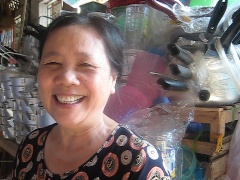 With her youthful energy, Ms. Trinh tells me that she “sells many many things!” At 60 years old, she recently expanded her stall with an impressive variety of kitchenware – pots and pans, fish sauce (nuoc mam), teapots, spices, mops, rice cookers, scissors, chopsticks, dishwashing liquid…the list goes on…