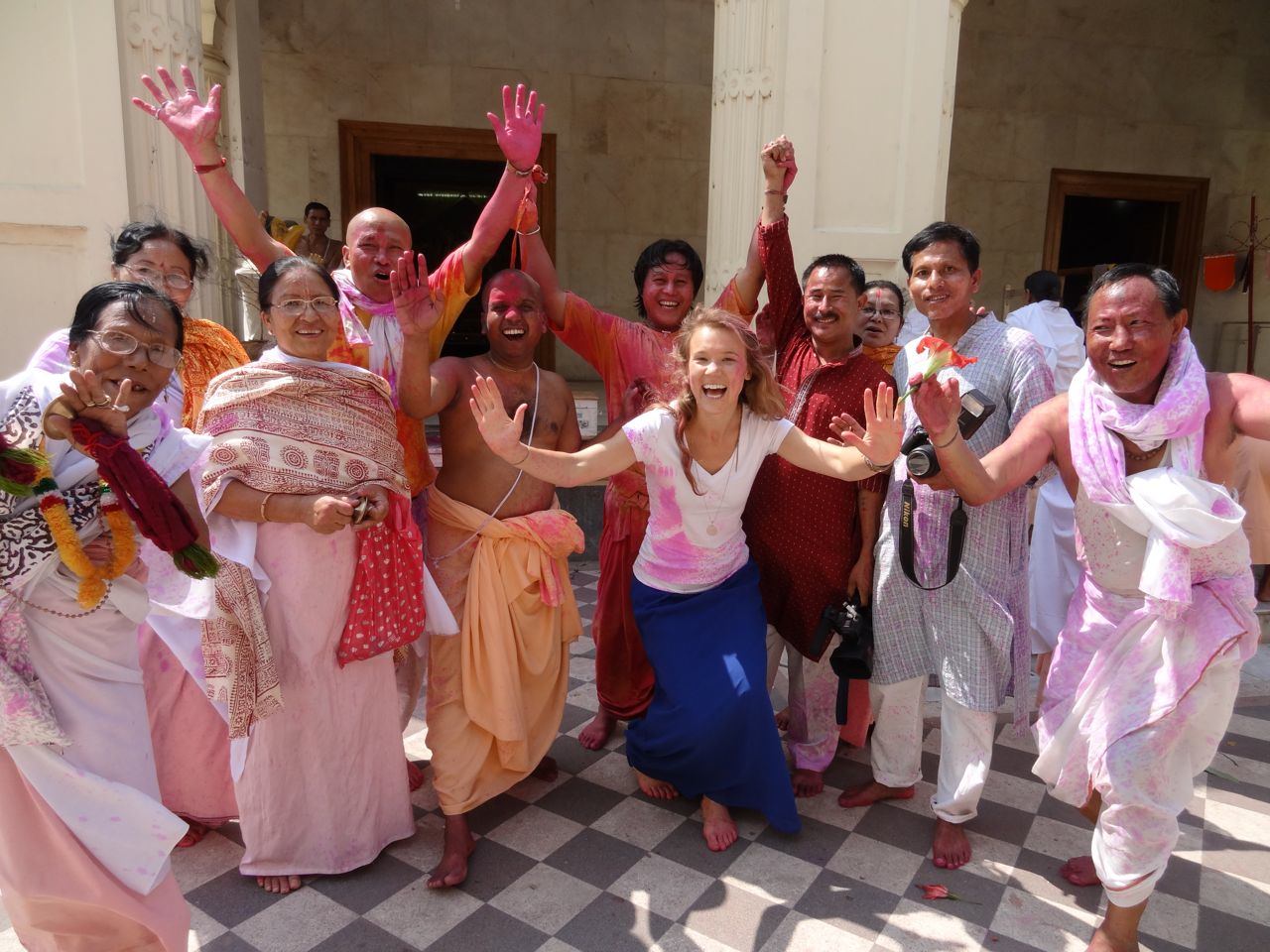 Kiva Fellow Stasi Baranoff (front and center) celebrating Holi in India with new friends.