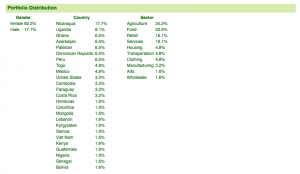 Regardless of what caused my biases, when I received my “Your Kiva Credit is now available for use” email last month, I felt like I was much more deliberate about who I lent to. So I encourage you all to take a look at your portfolio. Do you have some hidden biases or does your portfolio reflect your lending priorities? To see your portfolio distribution, go to your lender profile and scroll down to the very bottom.