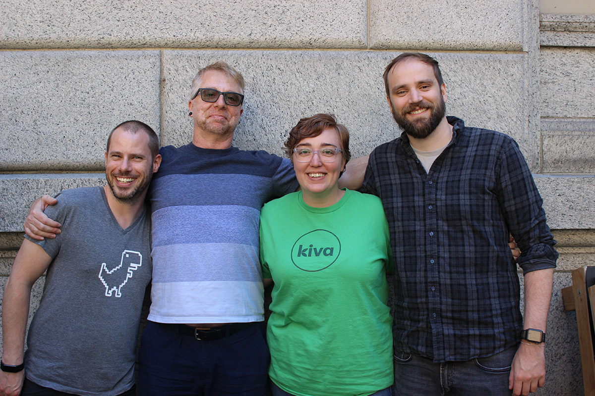 Meet the mobile app developers of the Kiva office in Portland. Android developer Brian Plummer, senior iOS and Android developer Zachary Heusinkveld, Android engineer Morgan Lutz and lead mobile software engineer Eric Jensen are making magic happen for Kiva’s brand new mobile app, rolling out next spring.