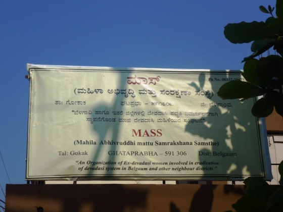 MASS is a society for and run by former Devadasis in Belgaum district, Karnataka. Devadasi means “Servant of God(ess)." Traditionally, a Devadasi is a girl dedicated to the worship and service of a deity or a temple for the rest of her life (they “marry” God and cannot “re”-marry), but the system is believed to have allegedly become illegal prostitution, also named as “slavery”, leading women to miserable lives, especially when they are no longer attractive and of use to their “patrons”. The devadasi system was outlawed in India in 1988, but even today this practice is prevalent in south India.