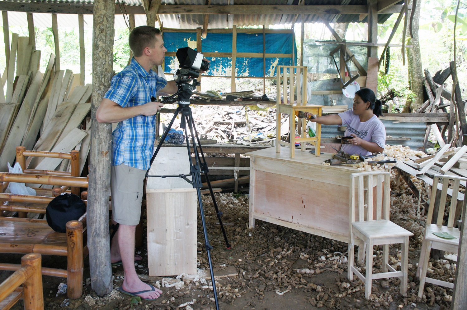 The good news? I am starting to get a handle on the learning curve of my new equipment. The camera is starting to feel like an extension of my arm, or perhaps an extension of me, and it's helping me capture footage from these borrowers in ways that would have never been possible if I was still shooting with DSLR's. The first borrower we filmed was the perfect example of this... She owned a furniture making business and we were taken to her woodshop to film.
