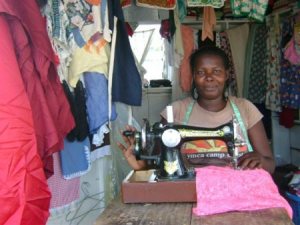 I sat down with Florence to interview her. She was fluent in English (which made my life easier!) and she had a business selling used clothing alongside a few of her own creations. She travels to Accra 2 times per month to buy two large bundles of clothes which she sells in her local villages- carrying the clothing on her head and looking for custom as well as having a small store as a base. This isn’t an unusual business, but Florence seemed to have a little spark about her. When I asked her what she dreamed for in the future, she told me she wanted to grow her business to be able to get enough profit to go to University once her children had finished their education. Florence wants to study professional dressmaking and have her own full time tailors shop- she clearly has a passion for clothes!