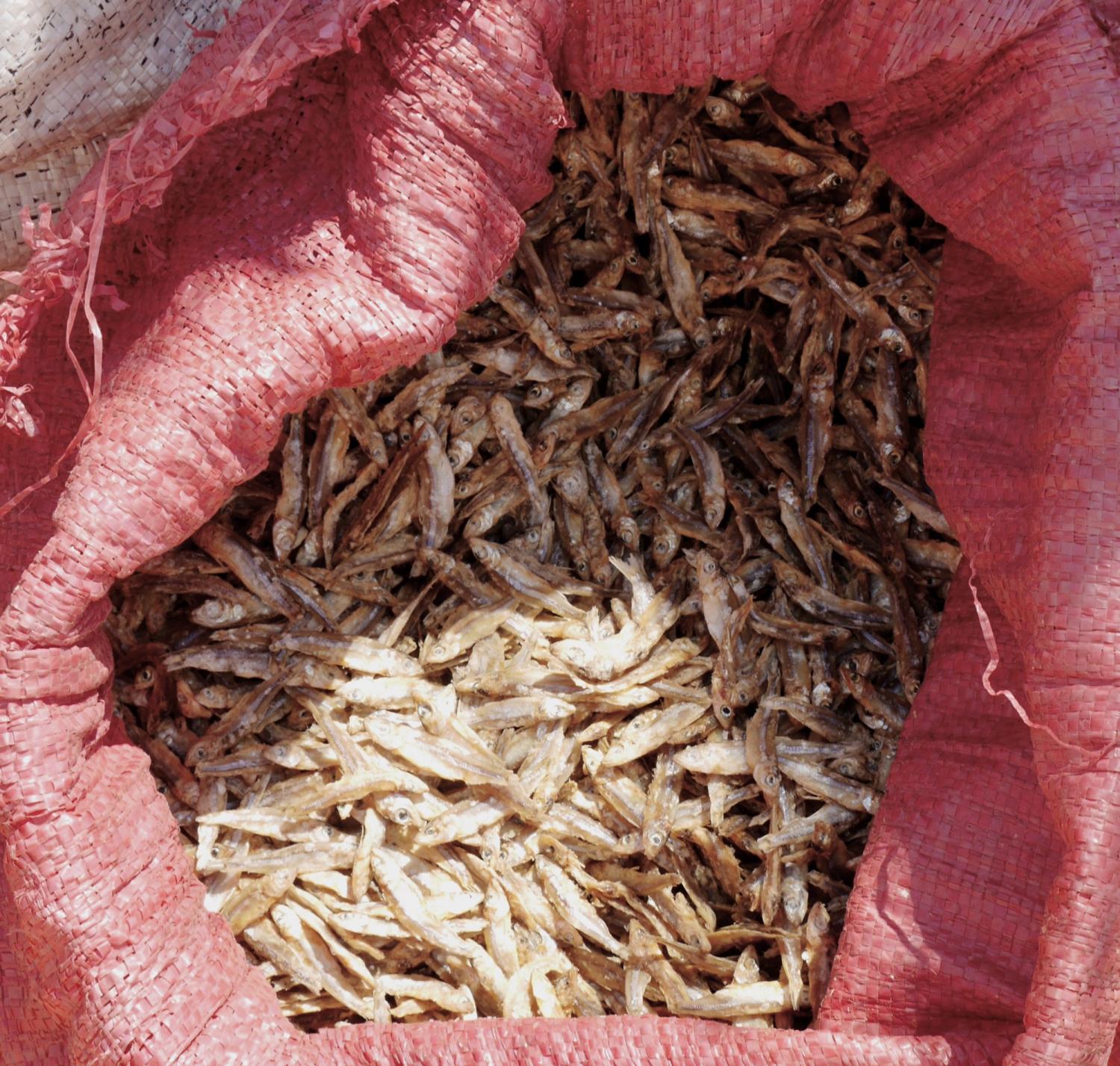 Nomatter buys the fresh fish straight from local fishermen. She hauls her purchase home (an 8km trek)! The fish is then spread out to dry in the sun, for several hours.