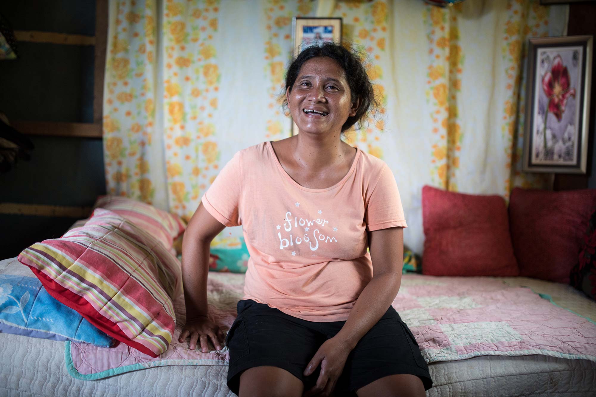 Promptly at 8 p.m., she rushes down to the port to greet the fishermen who have returned with more stock of fish. After loading the fresh fish into the 2 ice buckets, she lugs them back up the hill to her home, where she rubs oils on her achy shoulders and lower back before prepping dinner for her family. The next day, she repeats the same routine. It’s a physically grueling job, but she says she is happy with this work because at the end of the night, she can go home and be with her family without having to do anything more for her job.