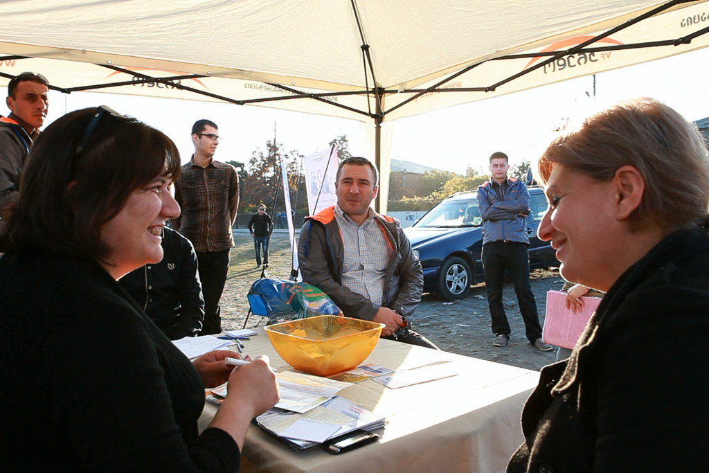 Entering Lagodekhi townBecause many farmers don't have access to financial services and even Credo's 39 branches aren't in every village in Georgia, Credo offers a variety of ways to stay in touch with their clients.