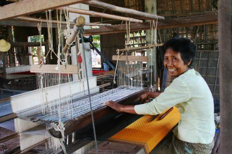 Khon Phum, 62, (pictured above) is one example of a borrower in Cambodia who has used loans funded on Kiva to improve her livelihood. Khon has 3 married children and lives with her daughter on an island in the Mekong River. Since her teenage years, she has been weaving silk, an ancient craft with a long and rich history in Cambodia. Today, the craft is slowly dying as the cost of imported raw silk increases and the price of finished silk textiles drops. Despite the challenges faced by silk weavers, Khon says she will continue weaving, as it has been her livelihood and identity for nearly 50 years now. She used a loan funded on Kiva to purchase silk materials for her weaving business, which will allow her to continue this profession that she has worked at for so long.