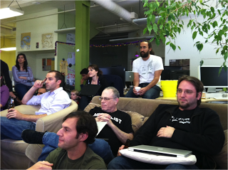 Every day at around 11am, each engineering team has “stand up” where we tell each other what we did yesterday, what we plan to do today, and whether anything is blocking our progress. It’s a nice way to hear what others are working on and be able to quickly offer help or suggestions. We stand in order to keep the meetings short (5 – 10 minutes):