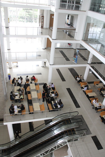 After lunch, we toured the rest of the student center, as well as the library, law building, and business school, marveling at the clean, open design and coveting the beautiful office spaces on the upper floors. Everywhere we went, the students we saw were so professionally attired that we couldn't help remarking on it. As it turns out, Strathmore maintains a strict dress code that serves as an equalizer among the school's richer and poorer students.