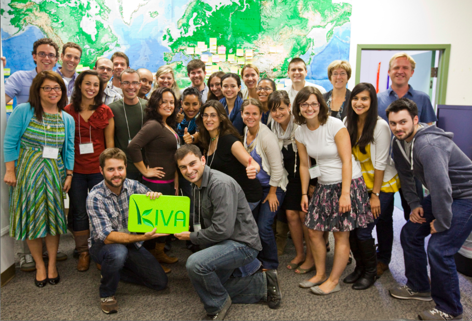 [top row, from left to right] Jacob Schultz (KFP Manager), Emmanuel von Arx, Marcus Berkowitz, Rob Gradoville, Abhinab Basnyat, DJ Forza, Jim Burke, Whitney Webb, Andrea Ramirez, Laurie Young, Sandra Pina, Dave Weber, Kim Strathearn, and Matt Flannery (Kiva CEO); [middle row] Charlotte Makoff, Lauren Barra, Chris Paci, Alba Castillo, Julie Kerr, Allison Moomey, Jill Hall, Claire Markham, Tejal Desai, and Andrew Huelsenbeck; [in front] Eric Brandt and Dave Koken (KFP Coordinators)