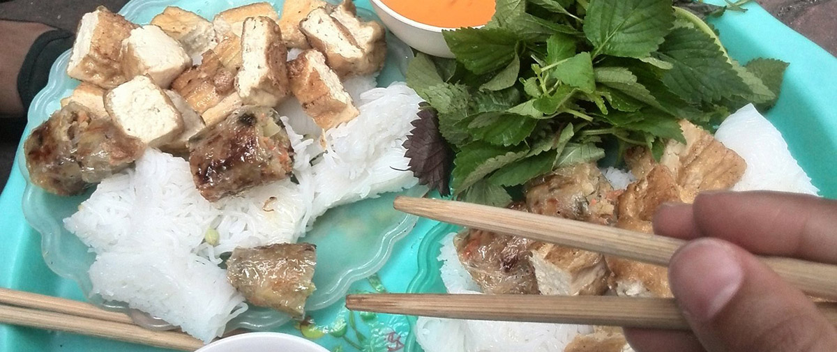 After visiting the Ho Chi Minh Museum and Mausoleum in Hanoi, a colleague and I grabbed some street food. That's vermicelli noodles, tofu and spring rolls you're seeing. Delish.