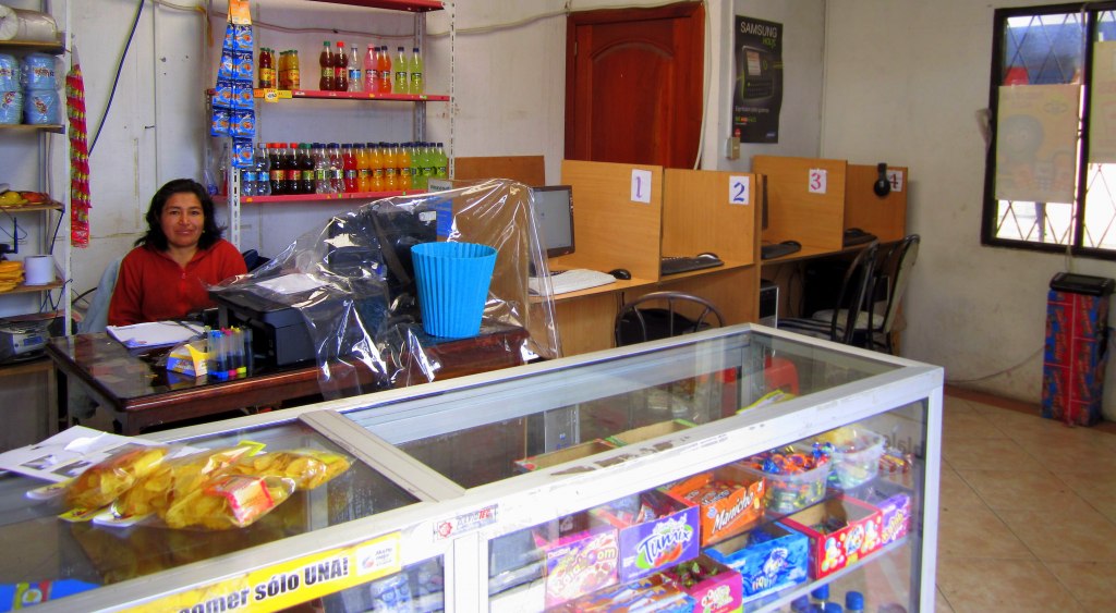 Marcia Suqui in her internet cafe, which she started with loans from Fundación ESPOIR several years ago