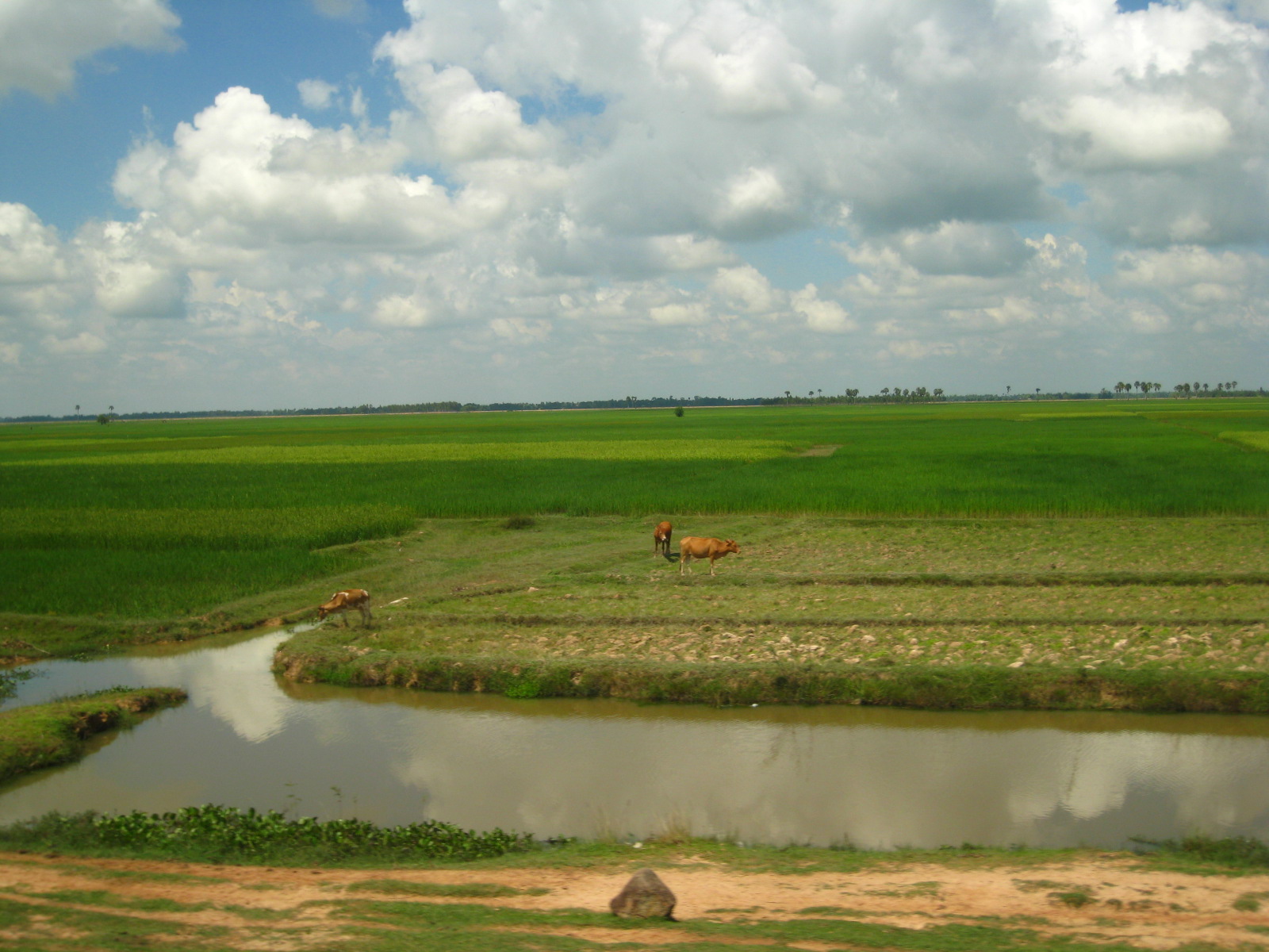 The following day I show up at work about 7:30am, we hop into the CREDIT truck and we are on our way. Our goal is to interview 5 clients and be back at CREDIT’s head office by noon for lunch. It takes us about an hour to get to the S’Ang branch office as we drive through the outskirts of the city and into the country side. It is currently monsoon season (June-November), and everywhere is flooded. Rice is growing as far as the eye can see in all shades of green. It rains almost every day, usually in the afternoon, but lately it has been unpredictable since it’s the end of the rainy season when the skies open-up whenever they wants. It is lovely though since it cools everything down, but unfortunately it does bring out all the mosquitoes. Yikes Dengue Fever and Japanese Encephalitis (wish I had convinced the vaccination clinic back in the states to give me the $500 vaccination)!