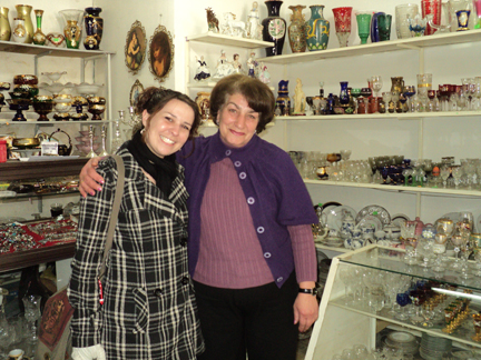 I was greeted with cake, chocolate and coffee at the Vanadzor branch (not a bad way to start the day!) The manager of the branch walked me down the street explaining that almost every shop had a loan with Nor Horizon. Goharik was the first borrower that I have had an opportunity to meet in person. She is one of the long-time customers that I speak of- on her 13th loan with Nor Horizon and her second Kiva loan. She welcomed me with an ear-to-ear grin, a hug and lots of reassurance, saying that I was a “good girl” and that she liked me. She proudly showcased her shop and moved customers out of the way so she could take pictures with me that she hopes I will place in a newspaper back in the US in a spread about her and her shop. She has run this shop for over 20 years along with her husband and daughter who step in while she travels to Yerevan to secure more inventory. It is commendable to manage the stability of a business through such tumultuous times including the division with the Soviet Union and the current economic crisis. I ask how business is doing and she just nods her head and says “normal”. I can immediately see how her outgoing charm and vibrant personality have won her many repeat customers and fully intend to return, myself, to purchase some beautiful wine glasses if I can figure out how to safely transport them home in my backpack.