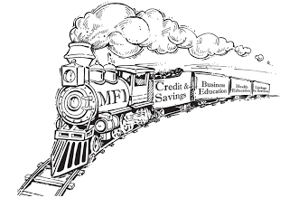Consider this diagram of a train. The locomotive is a local financial institution offering group-based microfinance. It is fueled by the financial margin on credit operations, which may in turn be fueled by savings.