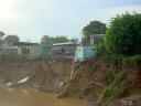 I have not been able to speak with members of the affected communities first-hand, largely because Fundacion San Miguel Arcángel has asked me to work mostly in other communities. But I have seen some of the damage while traveling near the Manoguayabo River in Santo Domingo near San Cristobal. The river swelled twenty feet over its average height and literally swallowed the earth beneath thousands of people’s homes. Debris from homes remains scattered across the riverbanks, and where many people had lived on an incline that gradually rolled down to the water’s edge, half their homes are now precariously suspended off a cliff – a complete vertical drop, twenty-five feet above the river.