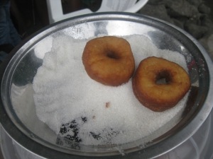 Click to view slideshow.1. Two donuts will also cost you 5LRD each. Walking around the streets you can find ladies carrying clear buckets on their heads (check also David’s blog), there’s a good variety of snacks and food to be found in these buckets; donuts are easy to spot and in my experience they are fresh in the mornings and very good. The ladies selling donuts usually have a cup of sugar and a spoon inside the bucket just in case you want to sprinkle yours a little bit more. Donuts have sometimes the typical round shape but on a smaller scale, sometimes they are like a small twist and also very common round ones, just like donut holes.