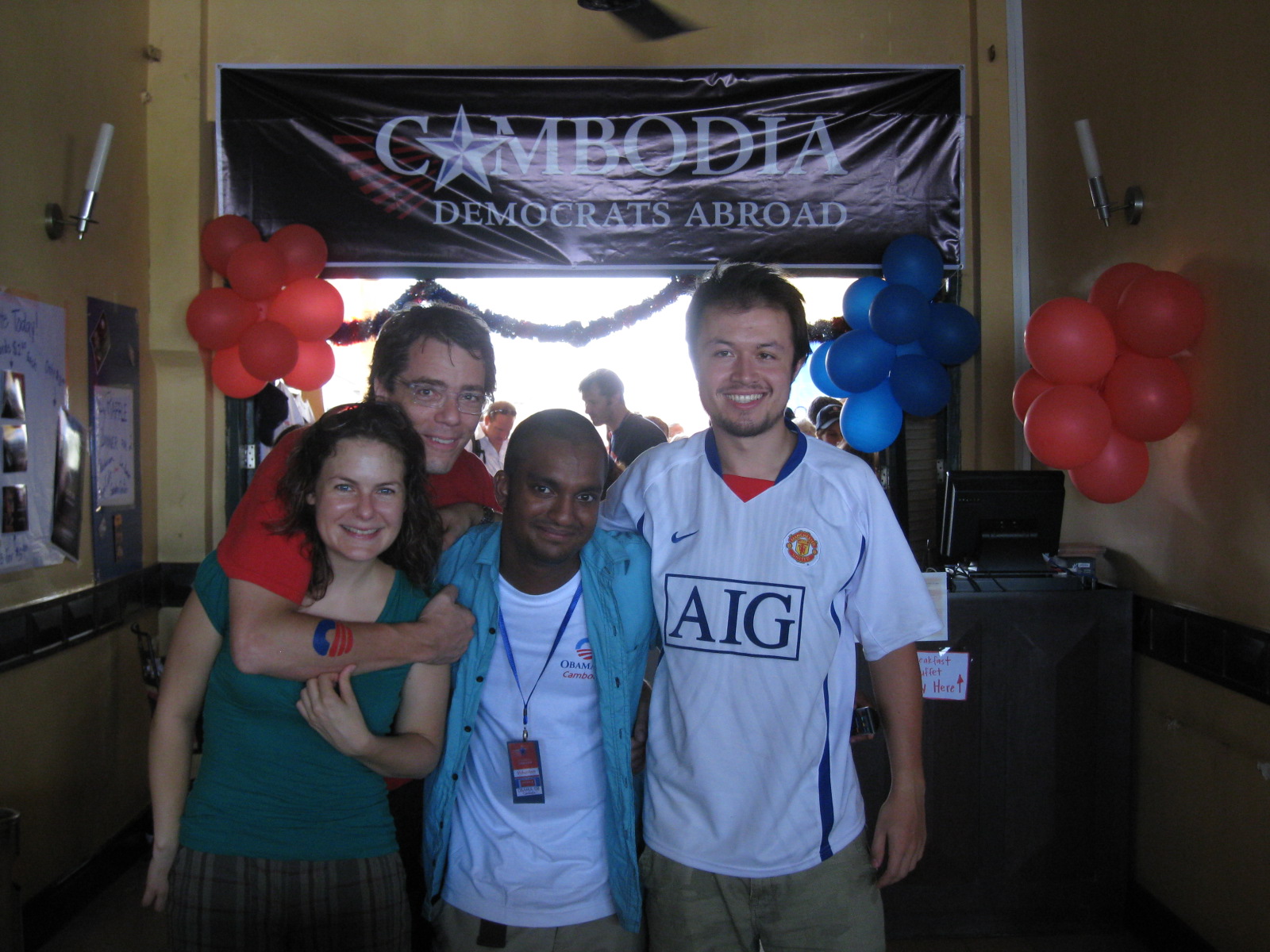 Wow, this Kiva world is small. The other day, while I was attending a United States Presidential election-day event with a good portion of the other expats in Phnom Penh, Cambodia, I noticed a woman just as teary-eyed as me as the results rolled in for President Elect Barack Obama. Both overwhelmed with emotion, we gave each other a hug out of pure joy. Then we just started talking, launching into a familiar round of questions you ask when you live or travel abroad.