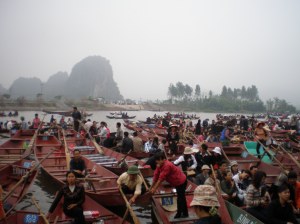My guide book says that the Perfume Pagoda—which is 60 km south west of Hanoi in picturesque limestone mountains and is actually a large cave—is one of the prime places to visit in the Hanoi area, but warns about visiting it for two months after Tet due to the crowds. I must say, the warning was completely justified! Nonetheless, this was a cultural experience I am glad I partook in.