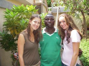 The best moment during my weekend involved another round of music. Abby’s homestay brothers decided to teach Abby and I how to dance Togolese-style. They took Abby’s computer outside. One of the young men began to swirl his arms and jump around like a duck. “The Chinese duck dance!” he trumpeted. They put on Togolese music: hip hop, tribal tunes, reggae. We tried to move like they did. I recognized a song from the taxi ride. We hopped around on one foot, and we taught them the slap-hands game and shadowboxed. We sweated a lot, and finally formed a four-person dance train and jumped up and down the hallway of the outdoor courtyard, singing and panting as we tried to keep up with the beat. The rest of the family stared at us from below as they washed the house and we danced up and down the stairs like a bunch of hooligans. There it was again: the power of music.