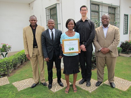 Early on in my stay in Lomé I presented the Social Performance badge certificate awarded by Kiva to my microfinance institution WAGES. I made enquiries and had a gilded frame made for the certificate at a local photography shop, and presented it to the Director of Women and Associations for Gains for Economic and Social (WAGES), Monsieur NASSIROU Ramanou.