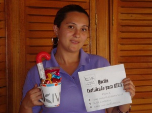 For now, I’d like to congratulate Yaclin, Fundacion Mujer credit officer, for being the first Kiva-certified staff member! This award, complete upon successfully uploading 3 loans and one journal update, comes with a Kiva-care basket to be envied by all!!