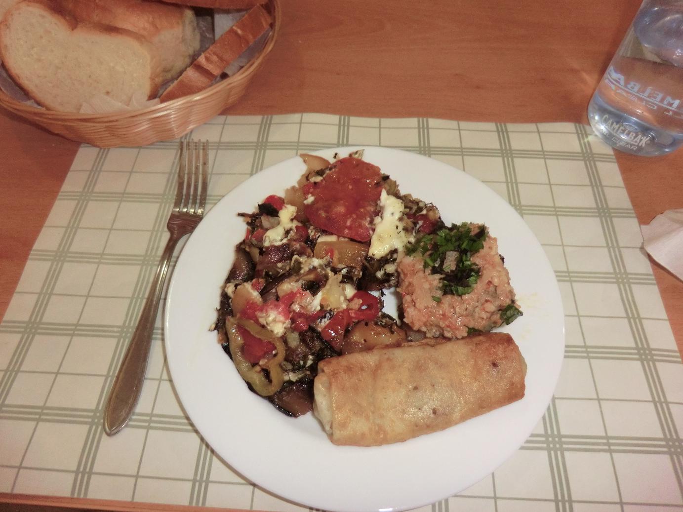 One of the benefits of working at LLC Credo is lunch. For several years, one of the staff members, Eva Shermadini, provided delicious lunches for staff. She had a staff of 2 cooks who worked in her home and a driver who would deliver food to the office. Eva would make salads and do prep work the night before, and the next day the other cooks would prepare the meals while Eva worked in the Credo office as a housekeeper. At lunch time, she would go to the kitchen and set up the food.