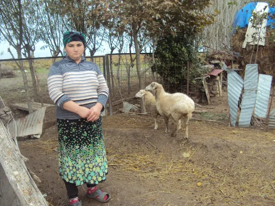 Elnura is a 36-year-old married woman with three children. She is an IDP and lives in the Bilasuvar IDP Settlement. Elnura has bred cattle, cows and sheep for the last 6 years. She is a housewife, and her husband is on a pension. Elnura together with her husband usually buy small calves and raise and fatten them for 5-6 months and then resell them for a proft. Her monthly income is 110 AZN, and this business is one source of financial income for her family. Meat is in very high demand in Azerbaijan, and people use it in everyday dishes like pilau and dolma. Elnura sells animals from her house, because transportation to the livestock bazaar or to the markets is too expensive for her. She wants to expand her business and improve the living conditions of her family. She applied for a 1500 AZN loan to purchase two cattle, one milk cow and fodder. This will be her second loan, and she has good credit history.